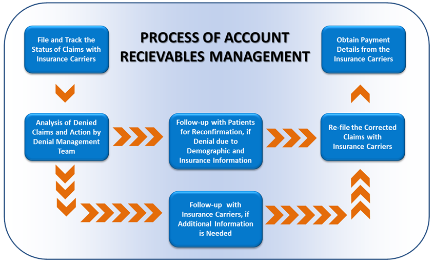 - In order to resolve the A/R, we conduct a comprehensive analysis, formulate a targeted plan, collaborate with the client to establish goals for collection, establish a procedure for negotiating with insurance companies, and pursue each claim through several follow-ups in an effort to retrieve the maximum amount of money.